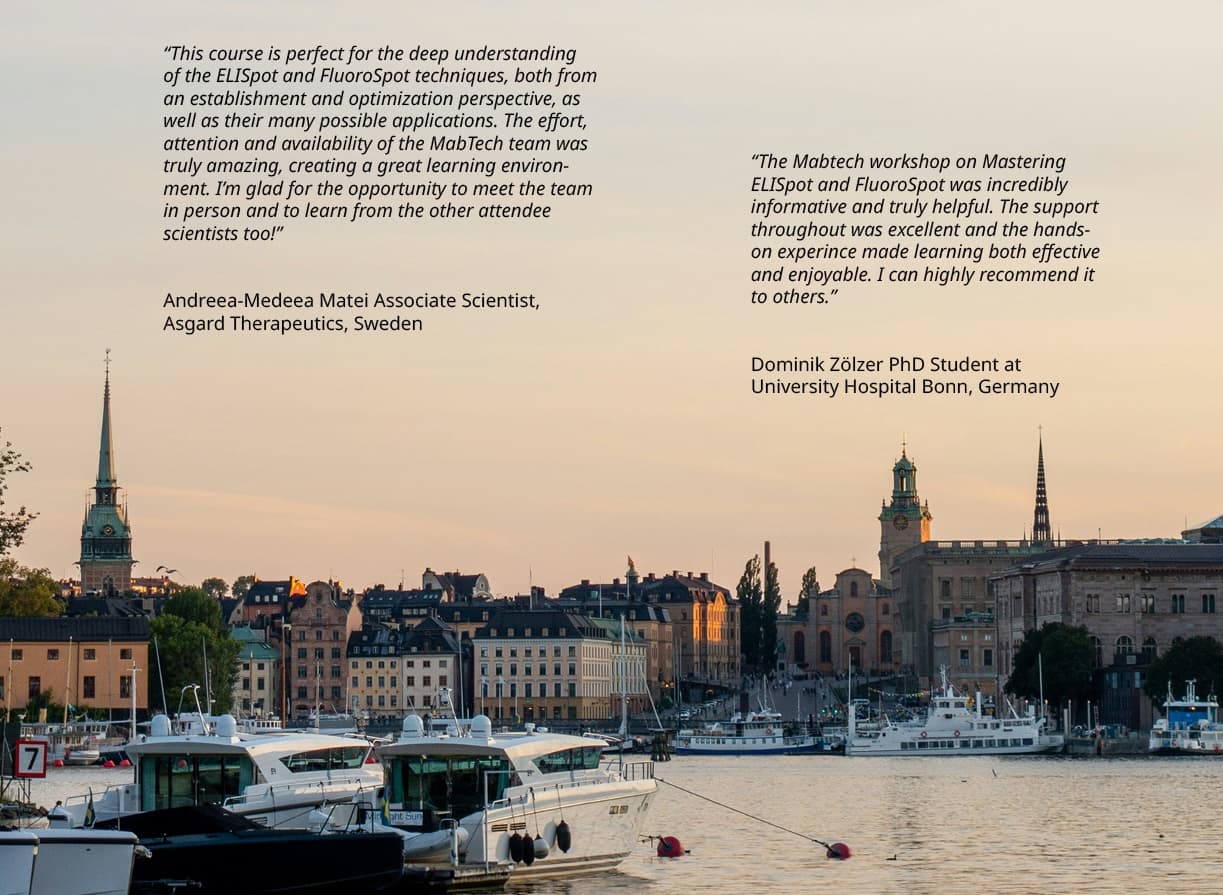 We hereby invite you to an exclusive, recurring training course in Stockholm, designed specifically for immunology researchers and experienced assay users. Whether you're working with T cell responses, cytokine profiling, or vaccine evaluation, this course will equip you with practical tools and in-depth insights to optimize your experiments and sharpen your results.