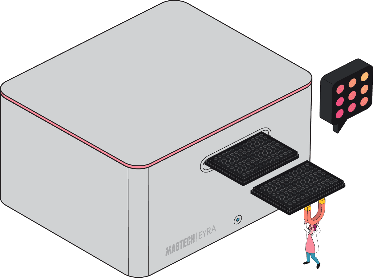 An ELISpot, FluoroSpot, or FociSpot assay is straightforward, and to make the acquisition and analysis of the data just as effortless, we developed Mabtech IRIS™ 2 and Mabtech ASTOR™ 2. For multiplex bead-based assays, (NEW!) Mabtech EYRA™ offers a fluidics-free solution that delivers reliable data with minimal hands-on time.